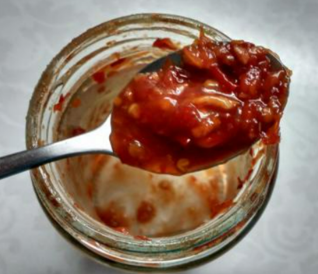 перец чили соленый, вода, чеснок, сахар, рисовый уксус, жёлтый перец чили, соль, инозинат натрия двузамещённый, консервант собрат калия, кукурузный крахмал, гуанилат натрия двузамещённый, стабилизатор ксантановая камедь.